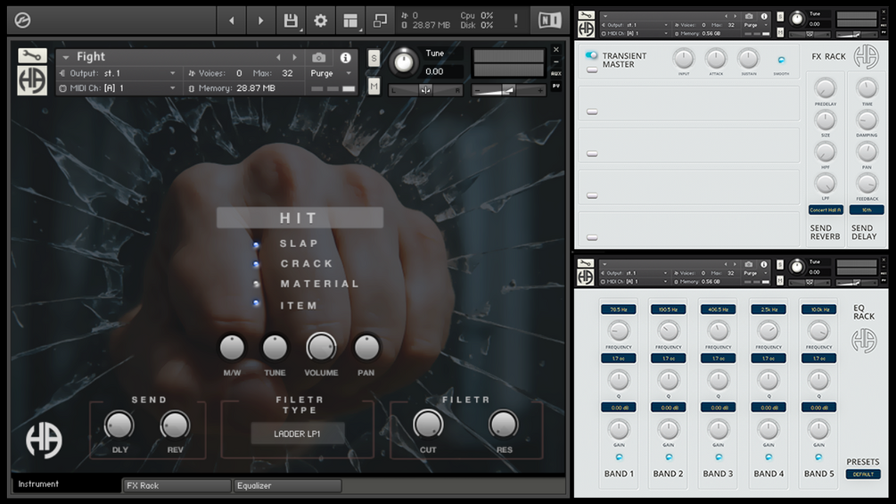 Fight kontakt library featuring 384 punchy fight sound effects crafted from slaps, material impacts, and cracks.